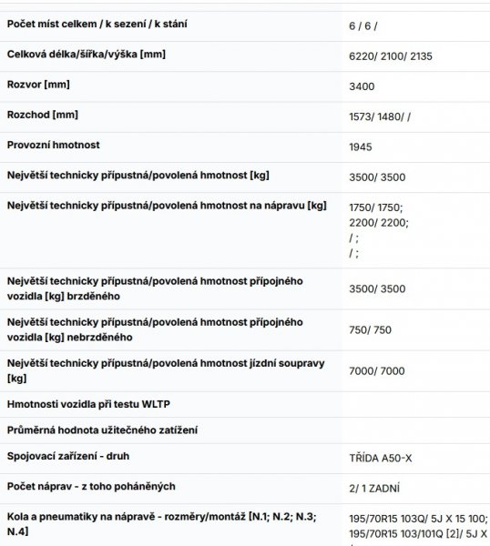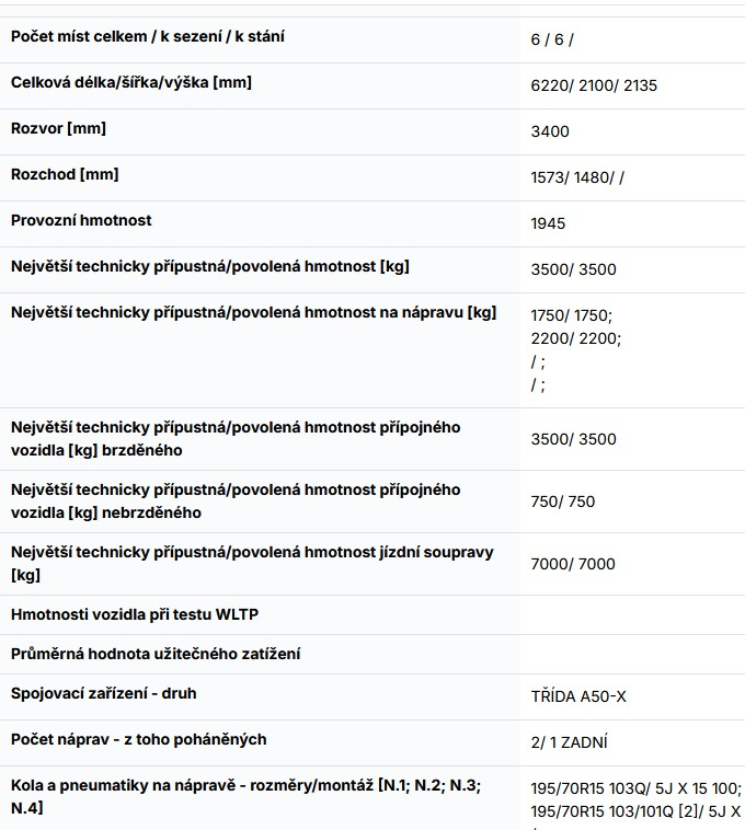 | Počet náprav: | 2 | Celková hmotnost: | 3 500 Kg |